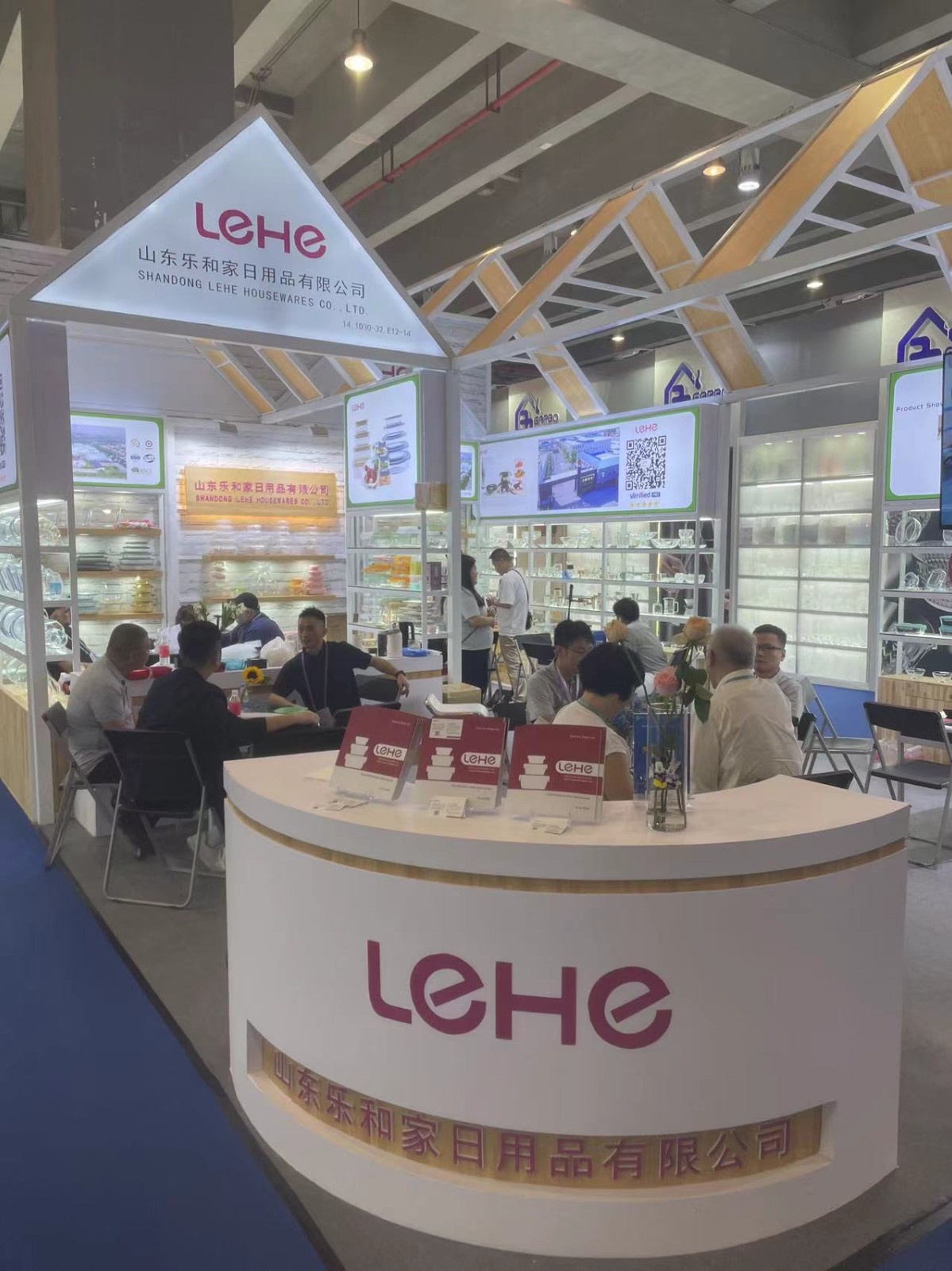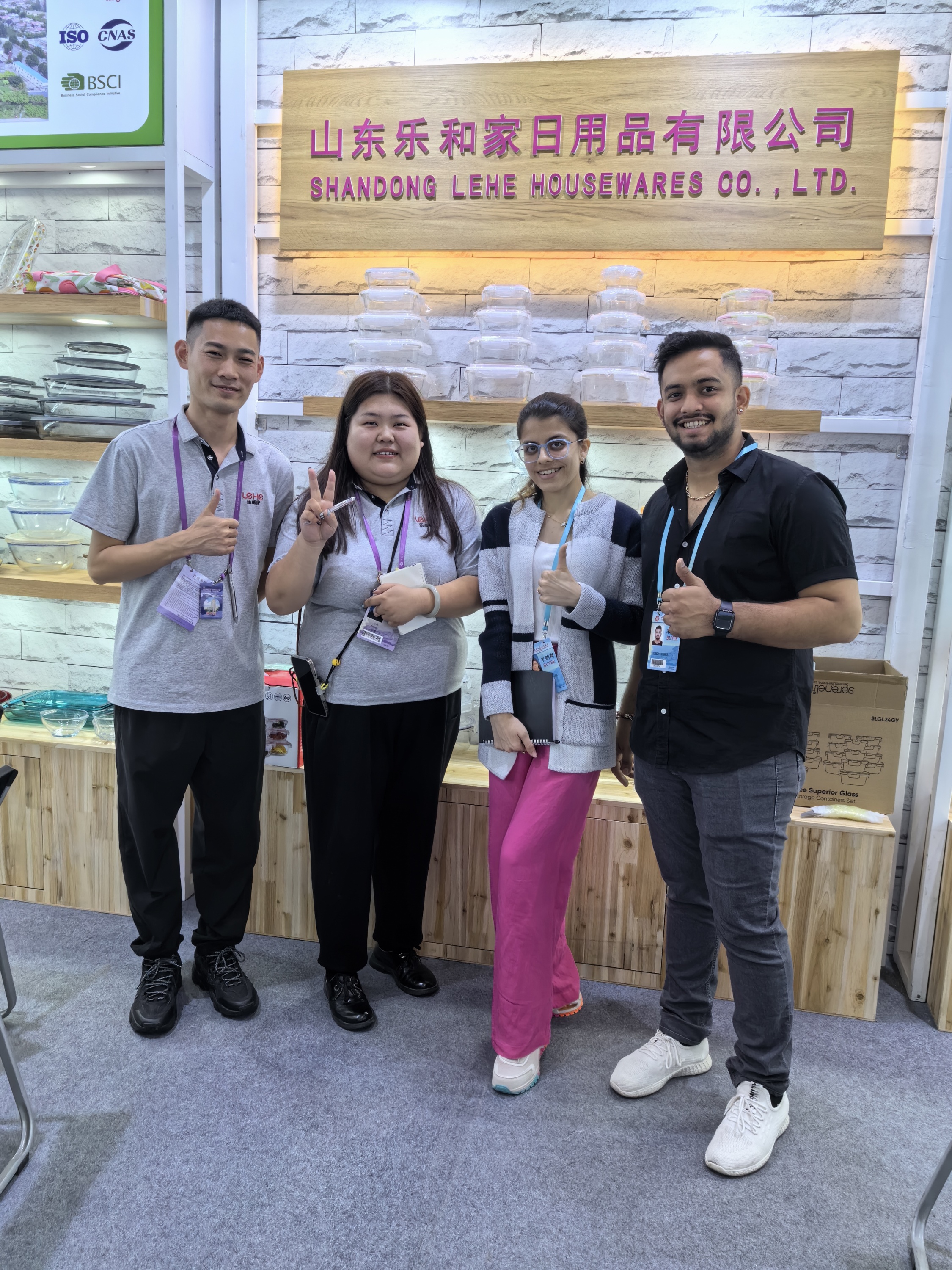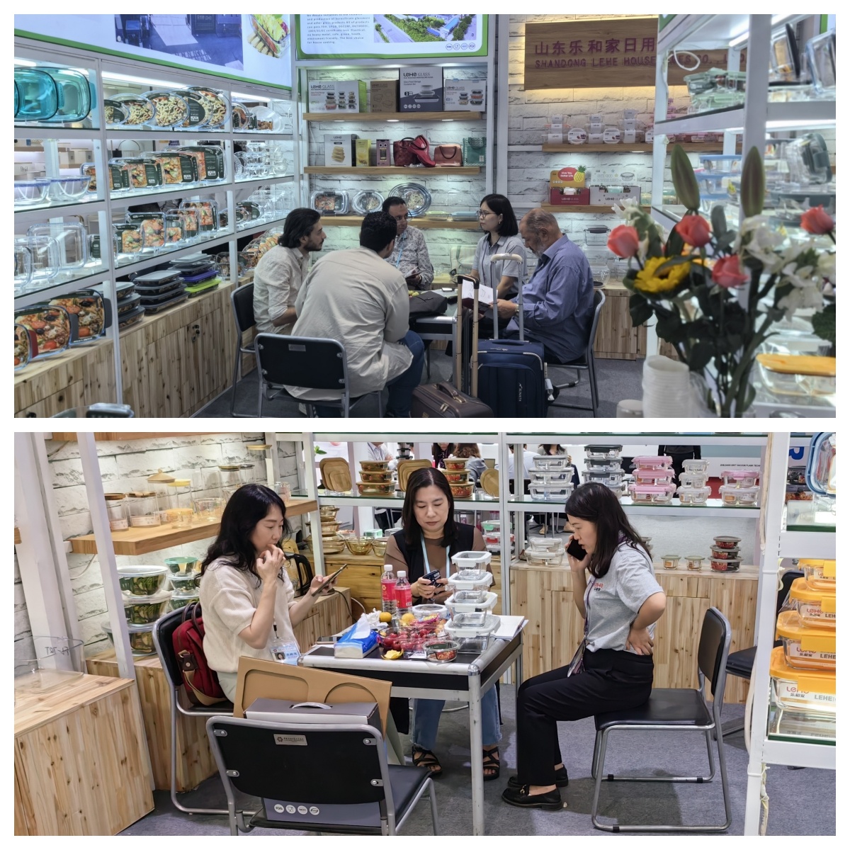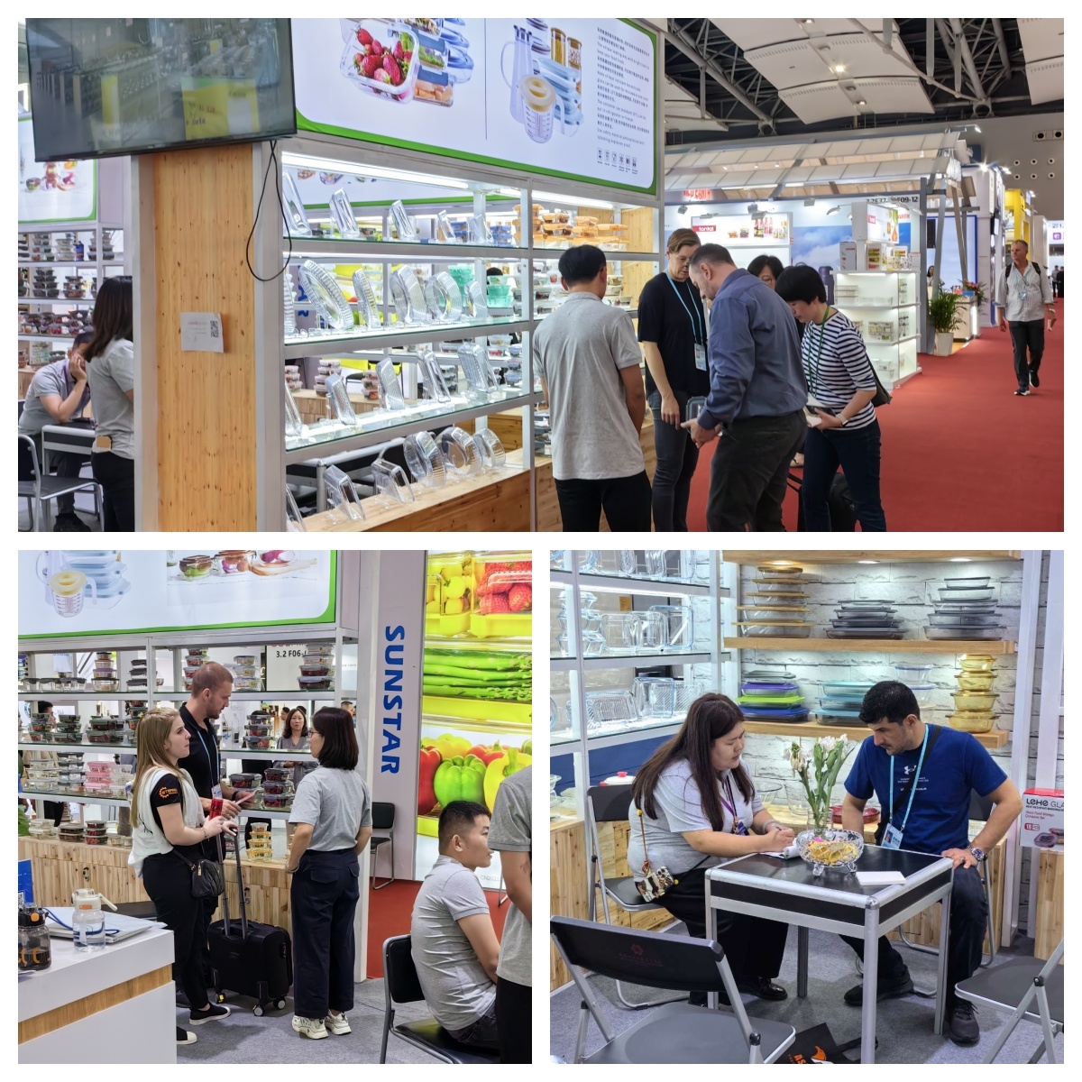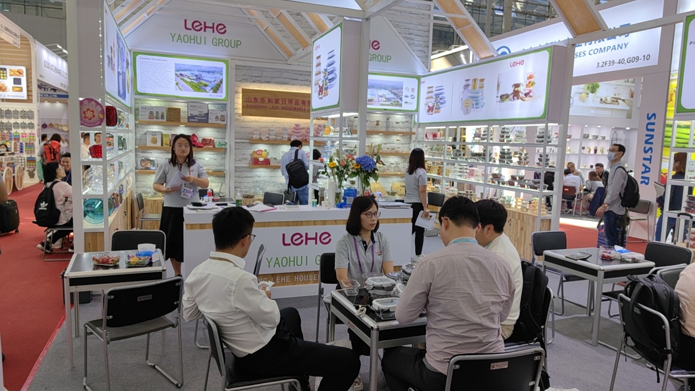 樂和家展位分別位于餐廚用具展區(qū)A區(qū)3.2與玻璃工藝品展區(qū)C區(qū)14.1。精心布置的展區(qū)擺放著樂和家高硼硅玻璃制品,它們形狀顏色各異,品質(zhì)優(yōu)良,吸引著往來者的目光。產(chǎn)品展示期間,前來咨詢的采購商絡(luò)繹不絕,樂和家業(yè)務(wù)經(jīng)理在現(xiàn)場熱情迎接,耐心講解,積極回應(yīng),通過面對面溝通的方式,用心接待每一位來自不同國家的新老朋友。